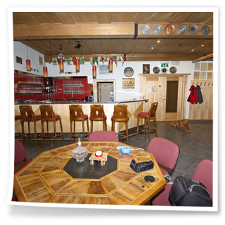 Im Aufenthaltsbereich befindet sich eine Bar an der Getränke konsumiert werden können.