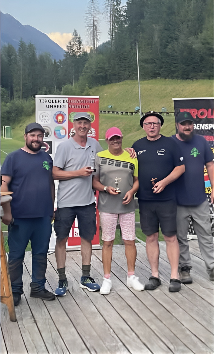 Lienz 24.5 bis 25.07.2025 Vom 24.05. bis 25.05.25 fand beim Hsv Lienz Bogensport das 18. Int. Dolomitenturnier statt und wir dürfen uns wieder mal über die Leistungen unserer 4 gestarteten Bogenschützen freuen! Geschossen wurden 2 x 28 3-D Ziele auf 2 unterschiedlichen Parcoursen nach IFAA und auch ein Zusatzbewerb mit einem Schuss auf 104 Meter, wo Klaus Gonner den 2. Platz erreichte, super gemacht! Platzierungen: HB Allg. 1. Platz Christian Schett 5. Platz Alexander Kanetscheider HB Sen. 3. Platz Rainer Meinschad TRB Sen. 2. Platz Klaus Gonner Einliches Dankeschön an den HSV Lienz für das lässige Turnier. | ||||
