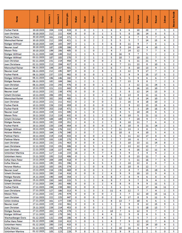 Auswertungen Hallentraining